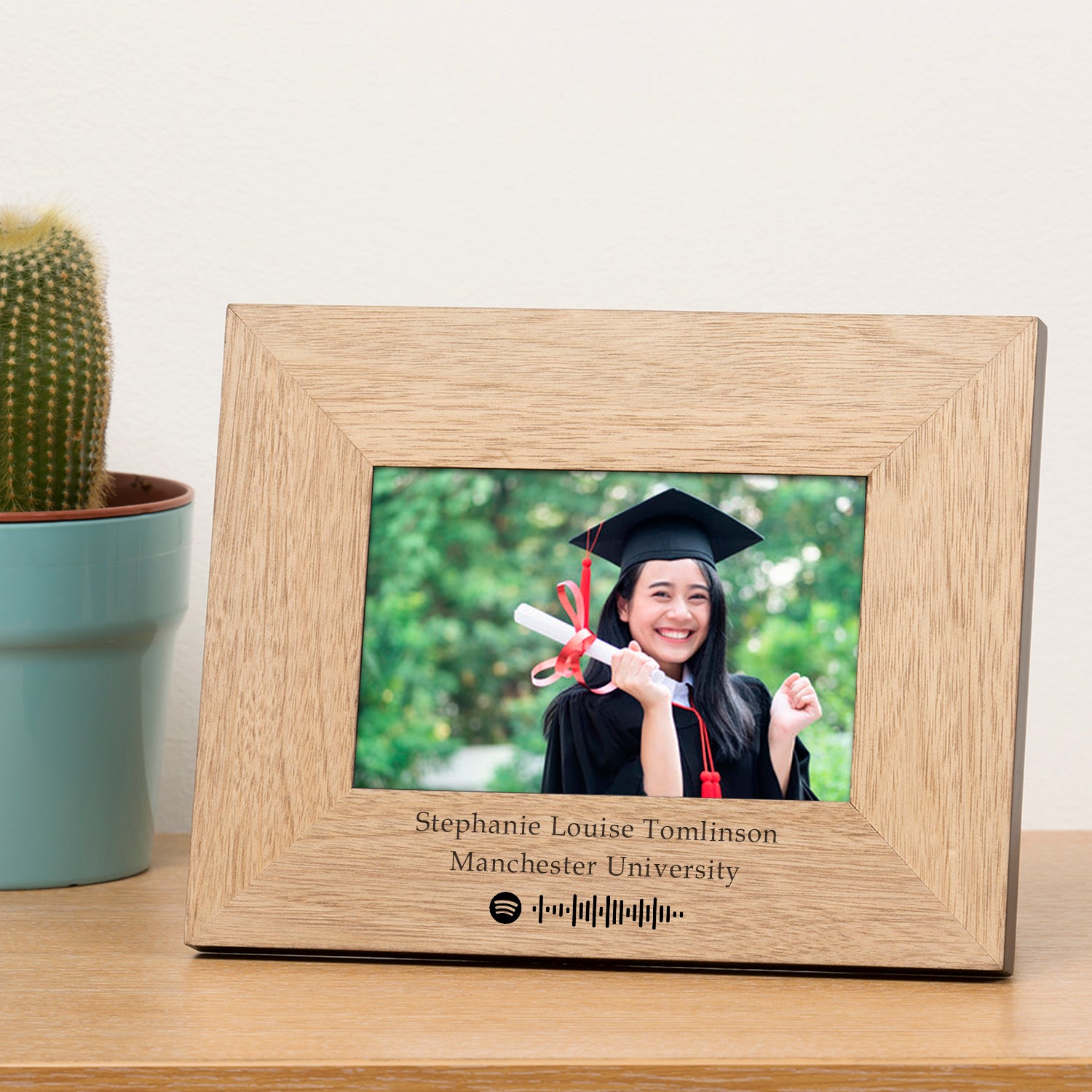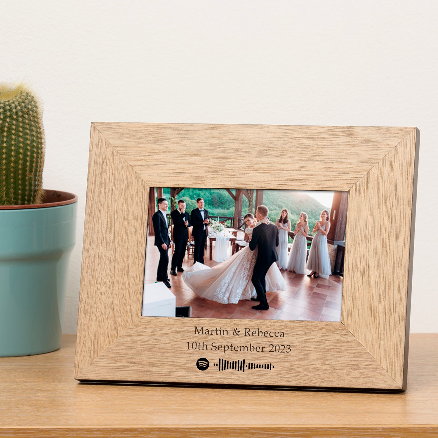 Celebrate your special moments with music and memories. This beautifully crafted wooden picture frame features a custom-engraved Spotify code for your favourite song, along with a personalised message — creating a unique and thoughtful gift for someone special.