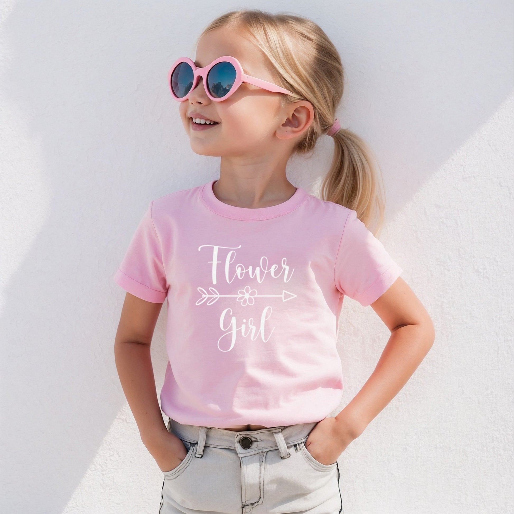 This flower girl t-shirt is an ideal wedding gift for a special day. Its soft material and comfortable fit make it perfect for the cute girl to wear and keep as a memento. Featuring a special design, this t-shirt will be a treasured keepsake for years to come.