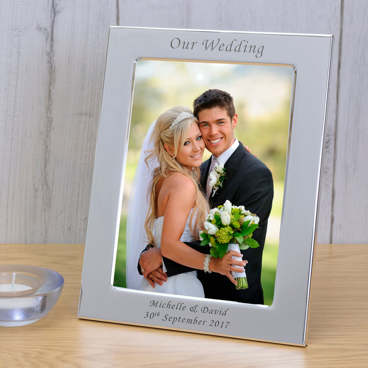 High quality silver plated frame.The top reads "Our Wedding". The bottom is left free for your own personalised message.
