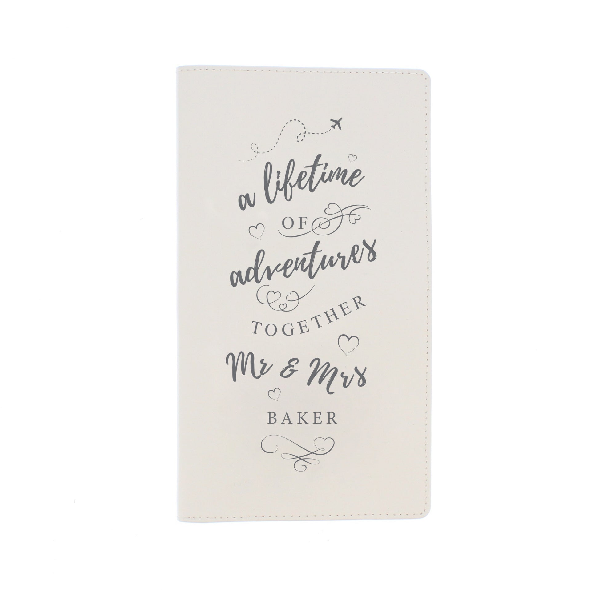 The words 'a lifetime OF adventures TOGETHER Mr & Mrs' are fixed.