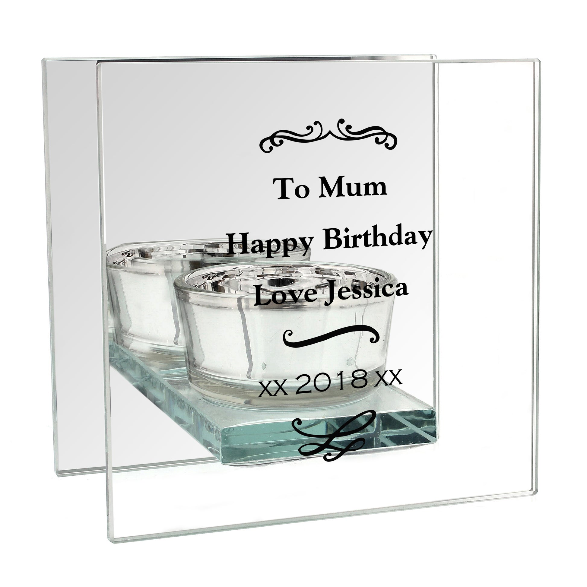Personalised Antique Scroll Mirrored Glass Tea Light Candle Holder