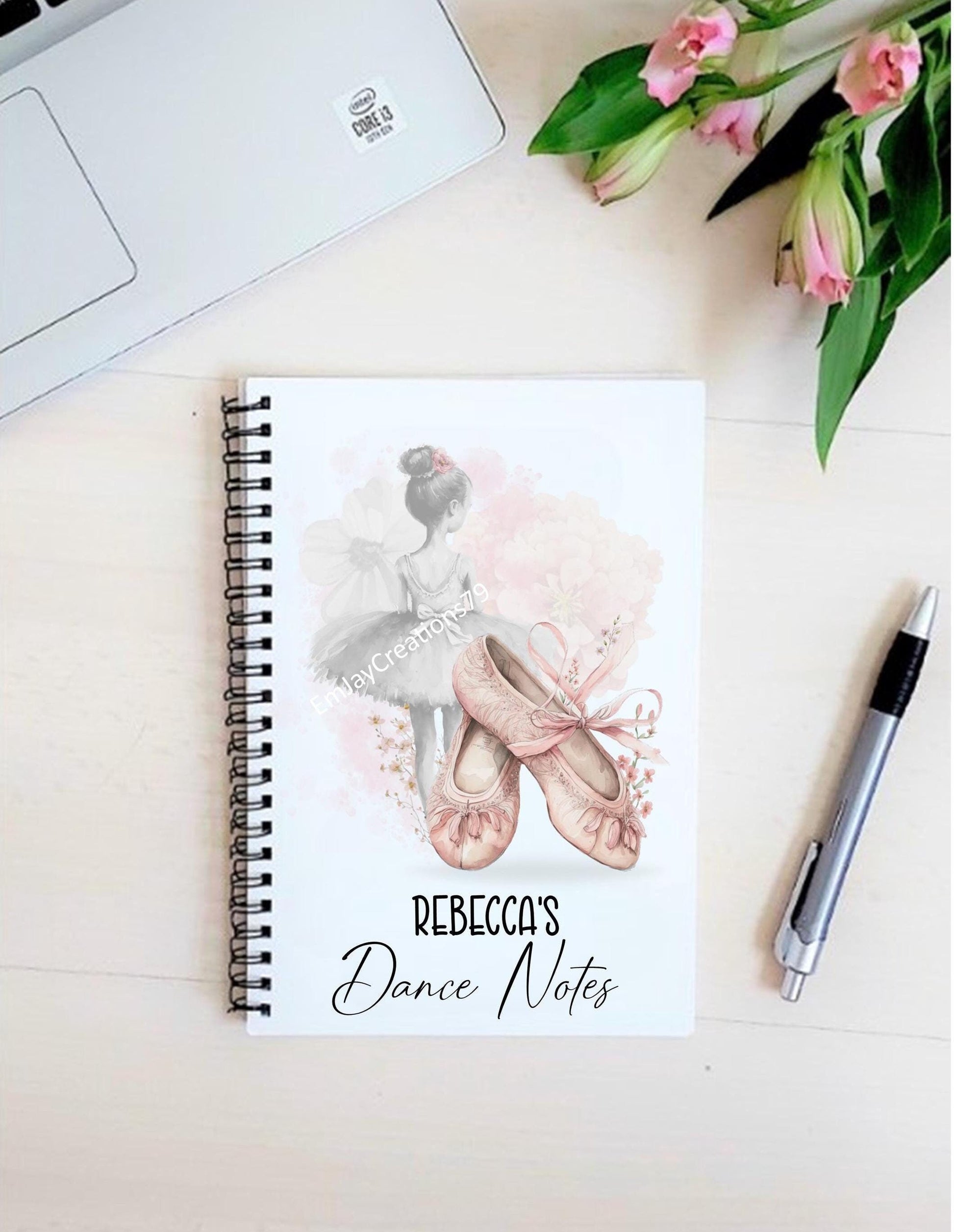Our personalised monogram/initial 80 page A5 wiro notebook is a perfect, handmade gift for children who love to dance and is ideal for making notes in class to keep track of those tricky French ballet terms!