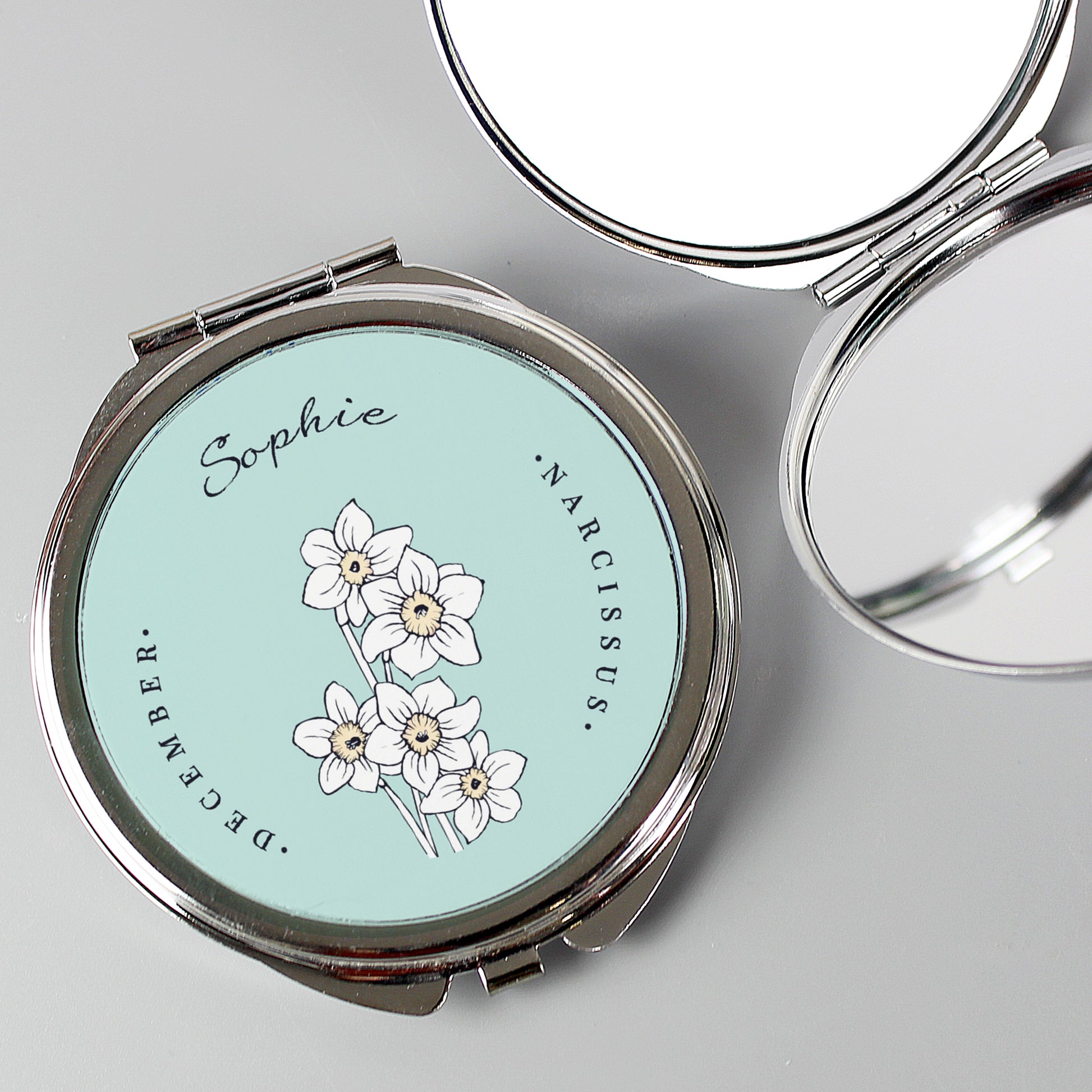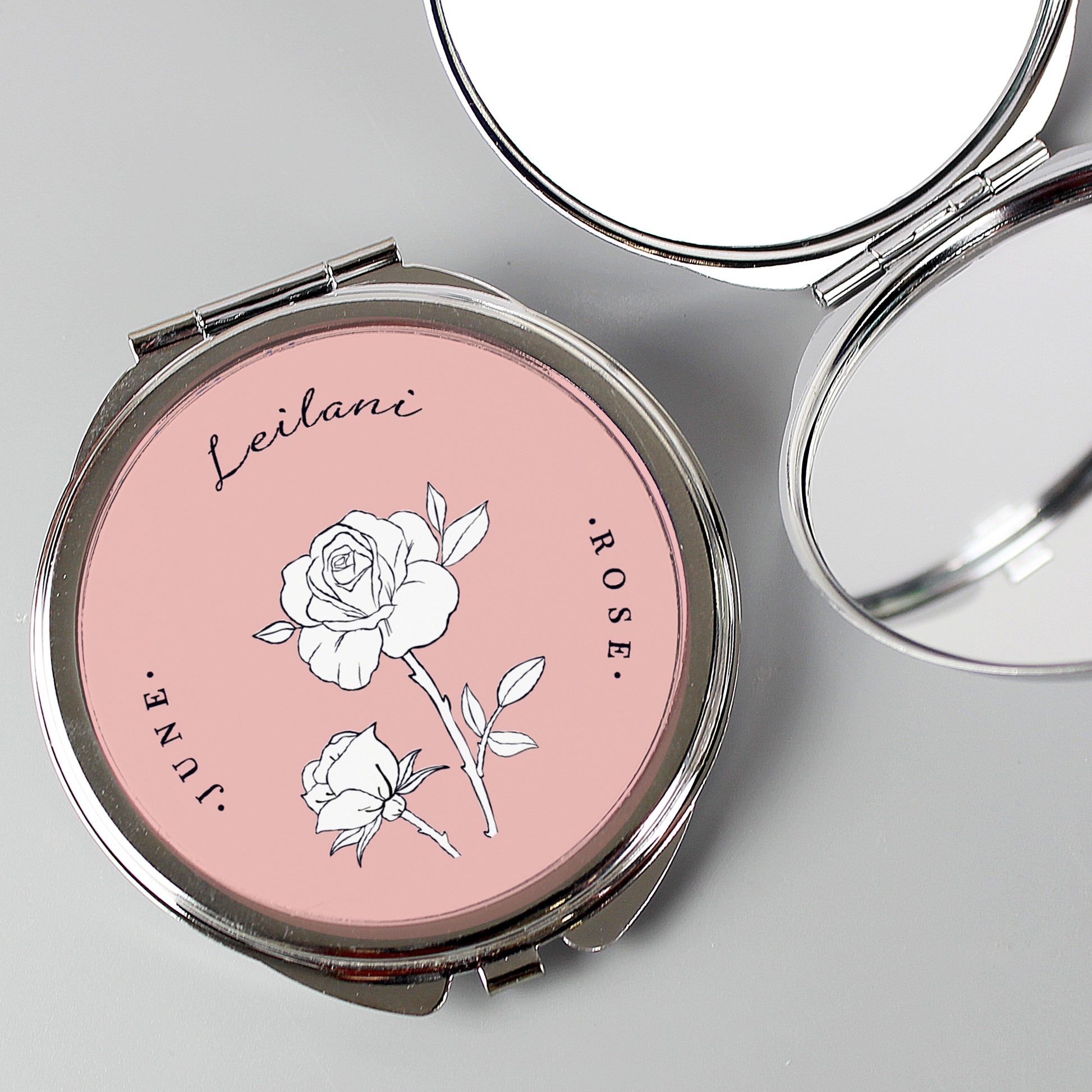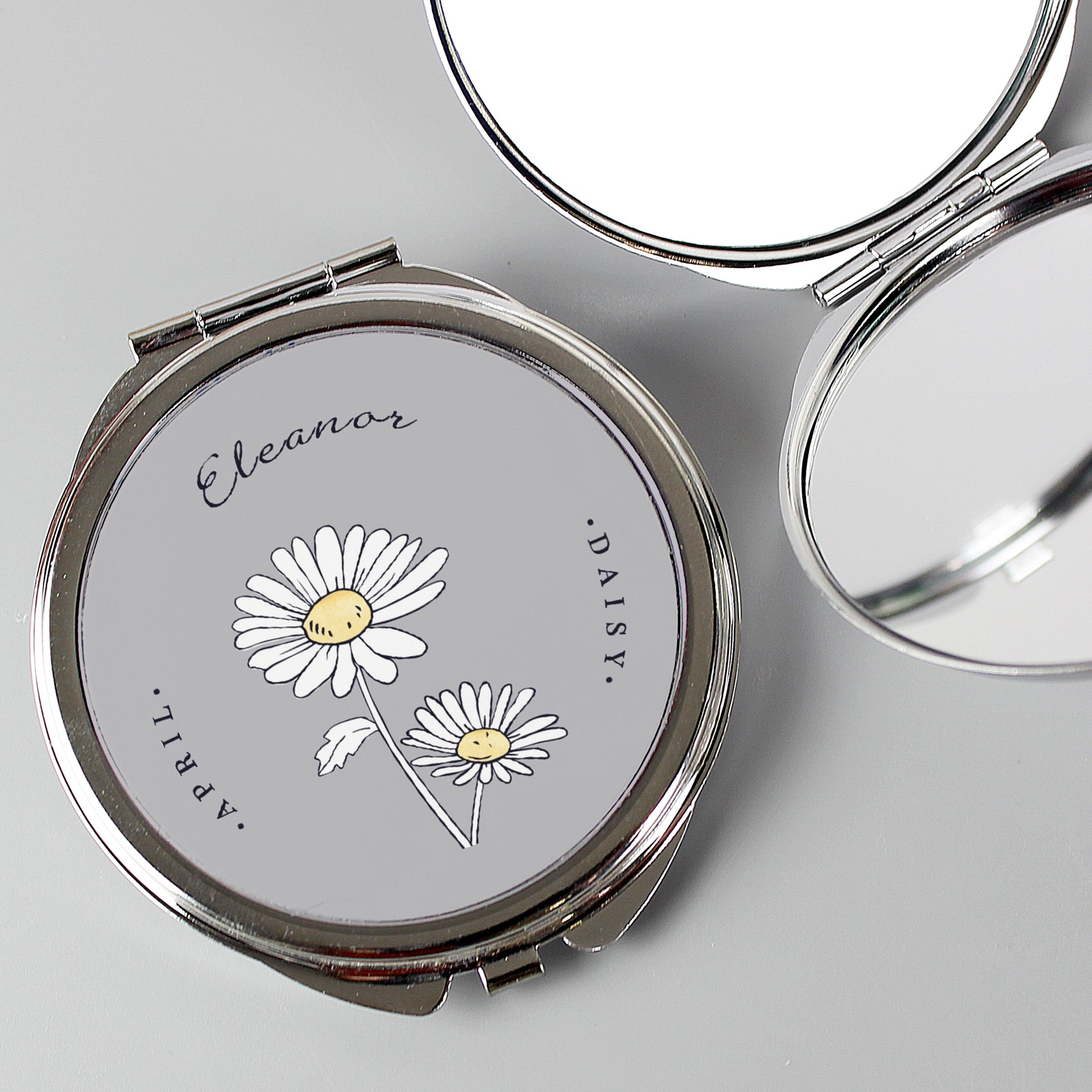 Personalised Birth Flower Round Compact Mirror