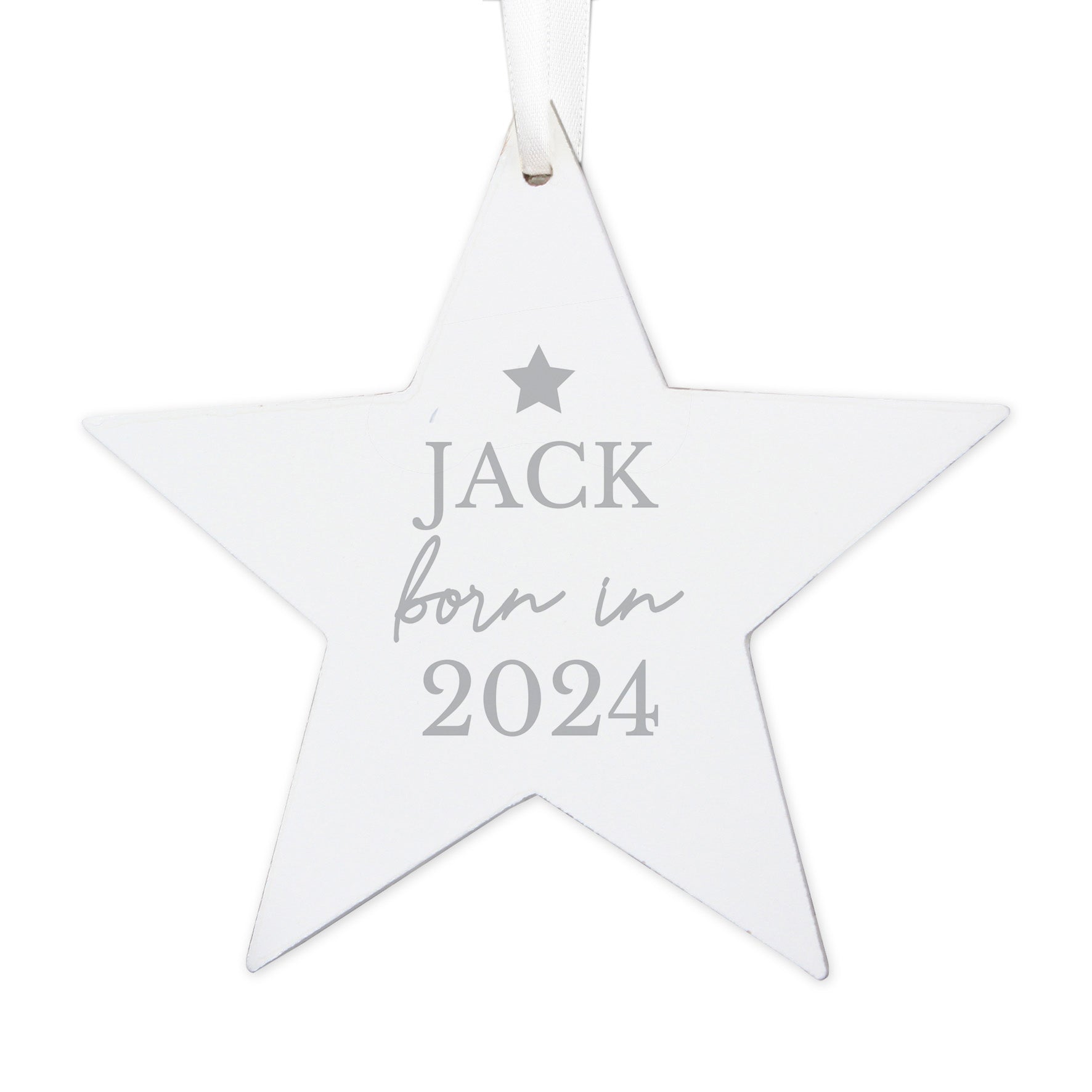 Star shaped decoration is made from wood with ribbon included. The decoration features a rustic finish, which may result in some slight imperfections.