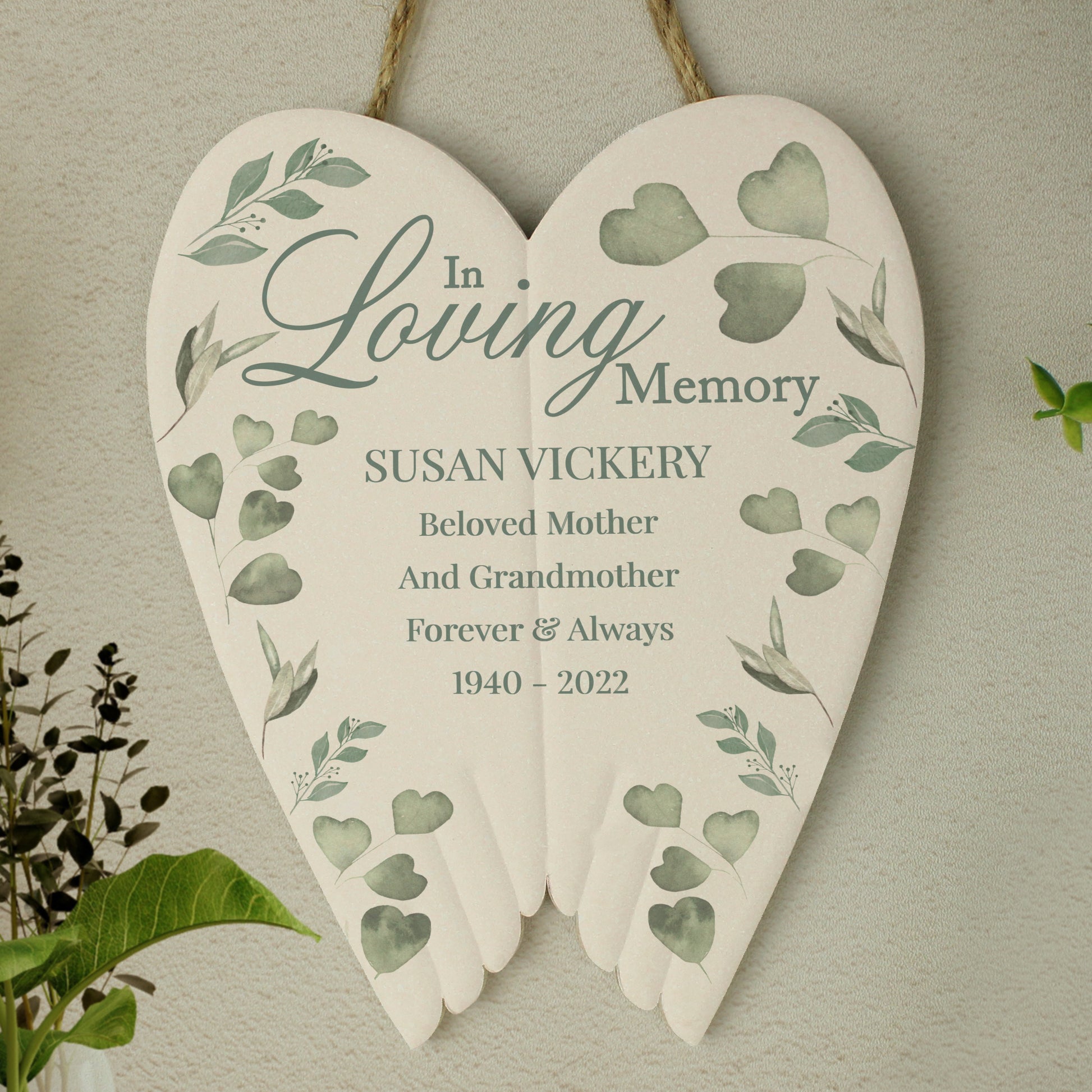 Personalised Botanical In Loving Memory Ceramic Wings