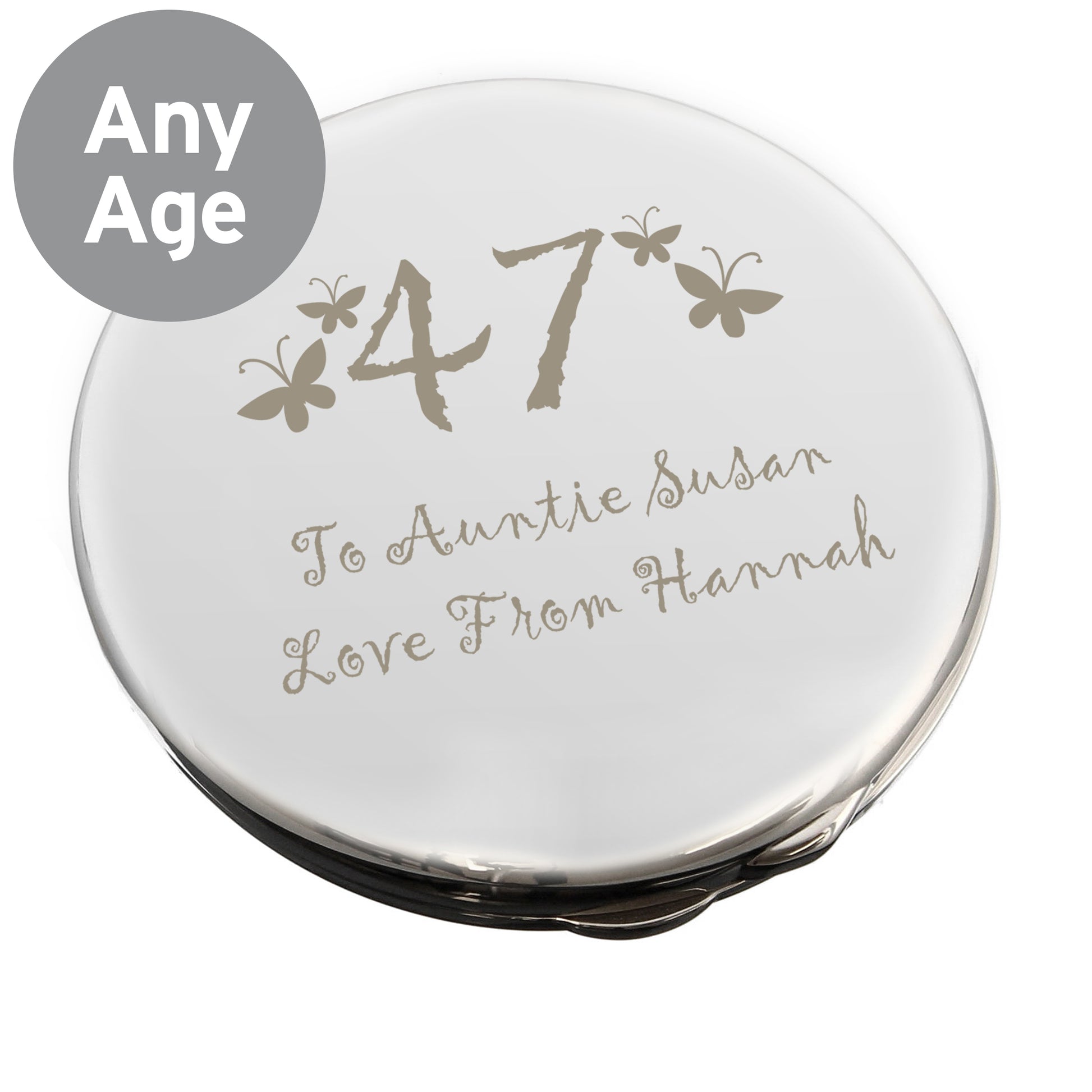 Personalised Butterfly Age Round Compact Mirror