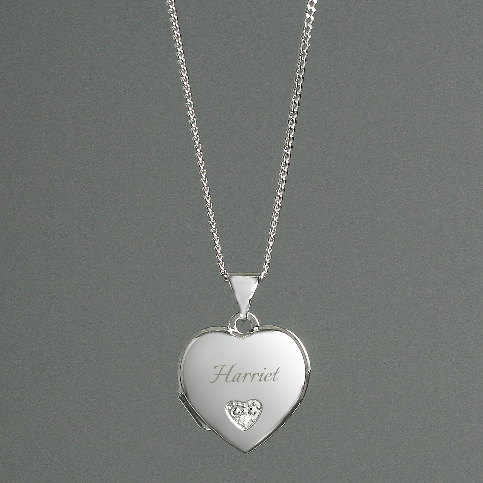Personalised Children's Sterling Silver & Cubic Zirconia Heart Locket Necklace