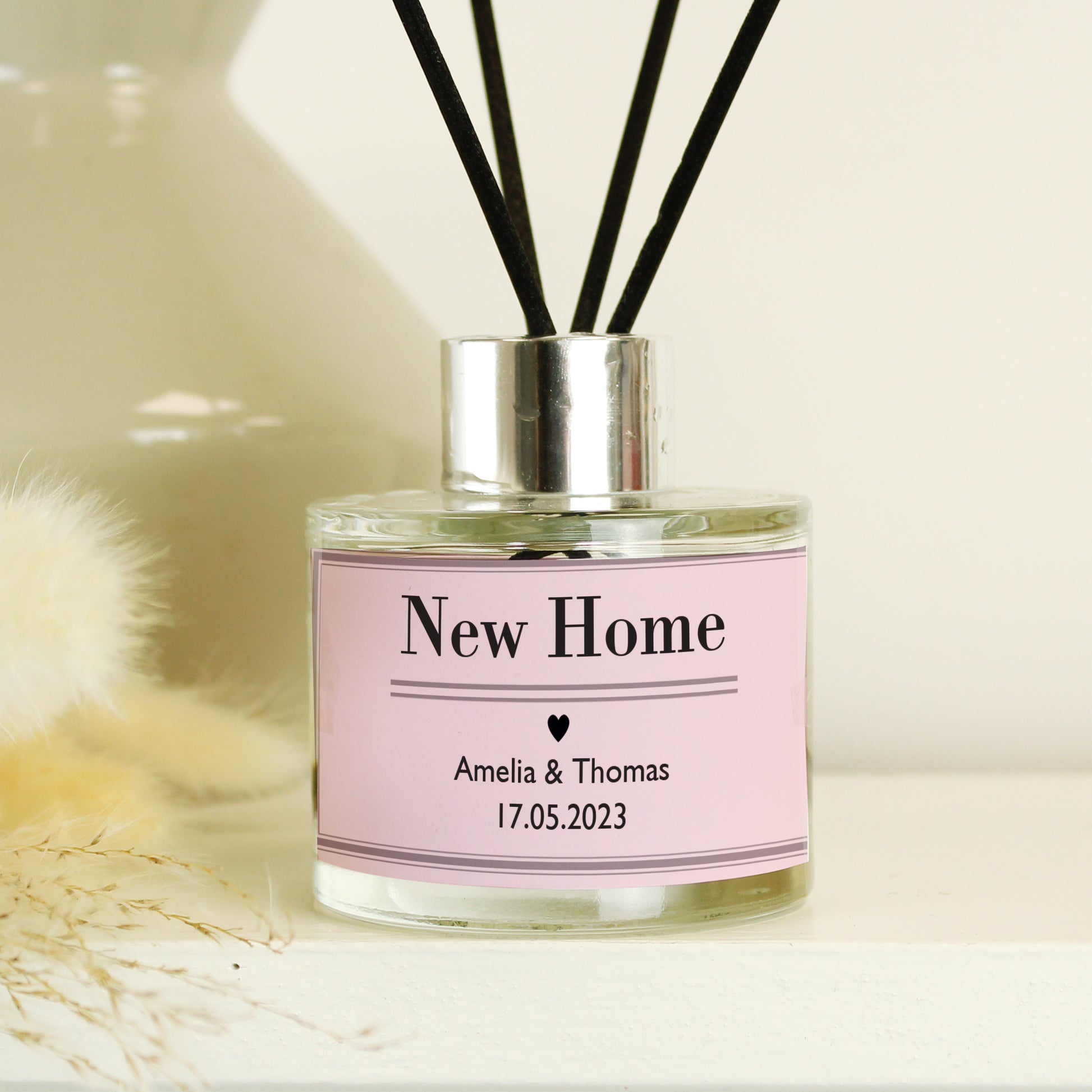 The reed diffuser can be personalised with a line of text of up to 15 characters and 2 lines of text, with up to 25 characters per line.