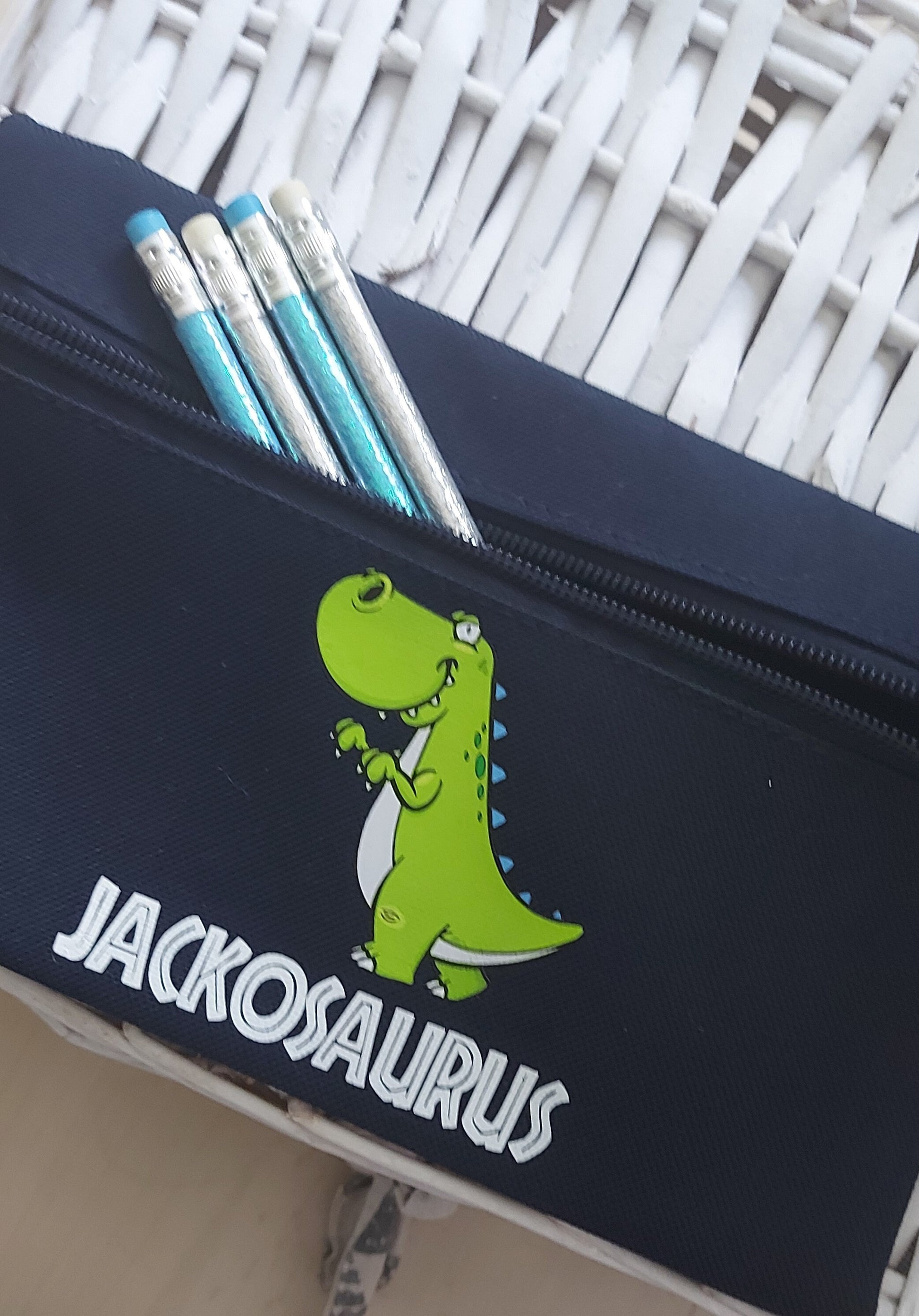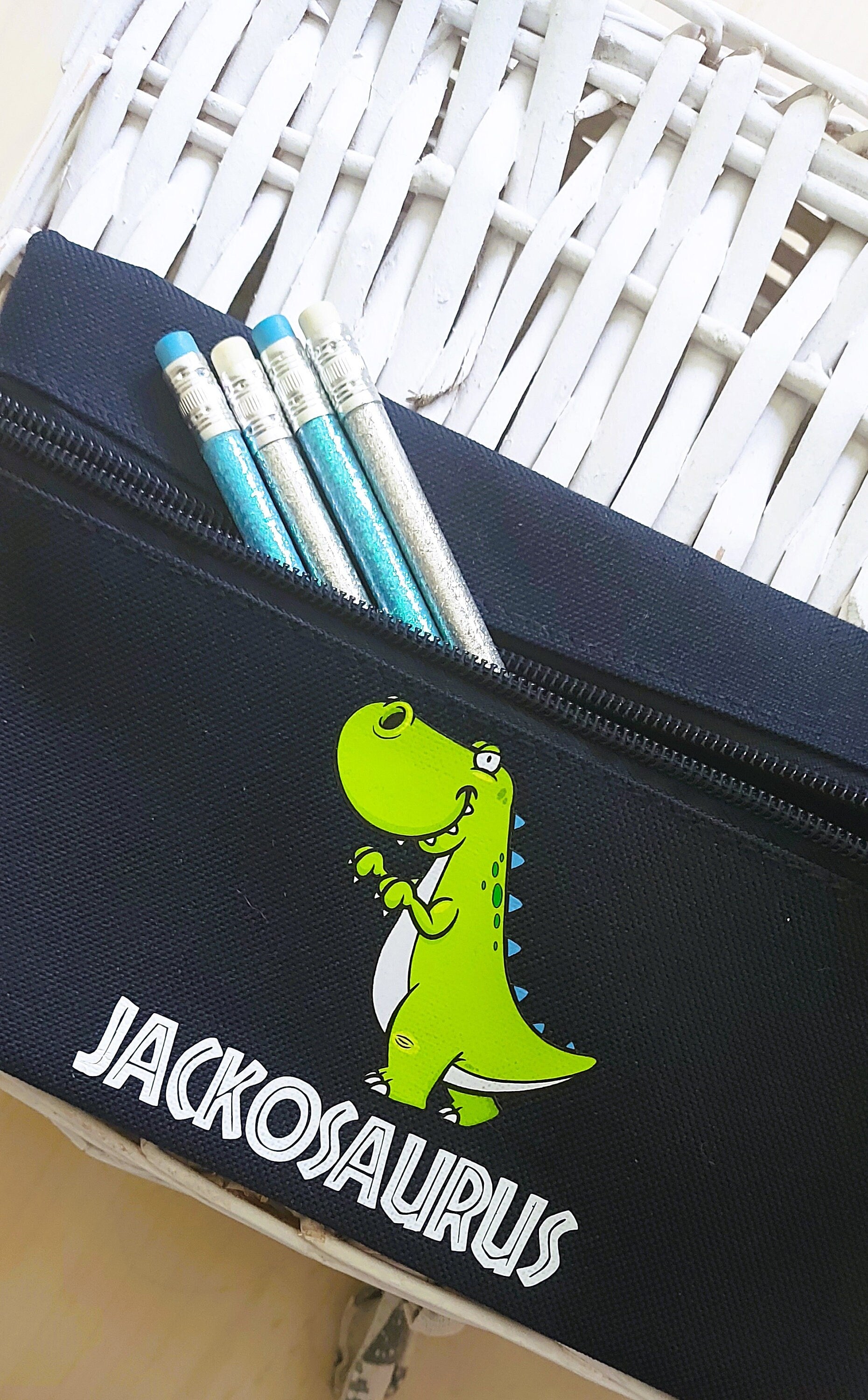 This personalised dinosaur pencil case would make a wonderful gift for a young boy or girl who loves prehistoric animals.