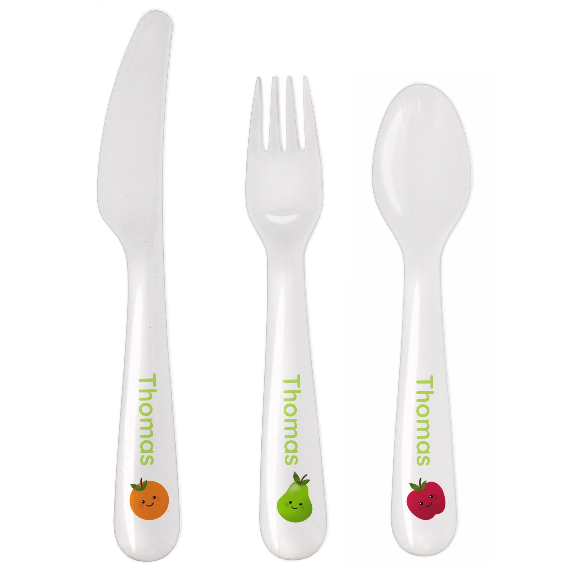 This practical 3 piece set of plastic cutlery can be personalised with any name up to 12 characters.