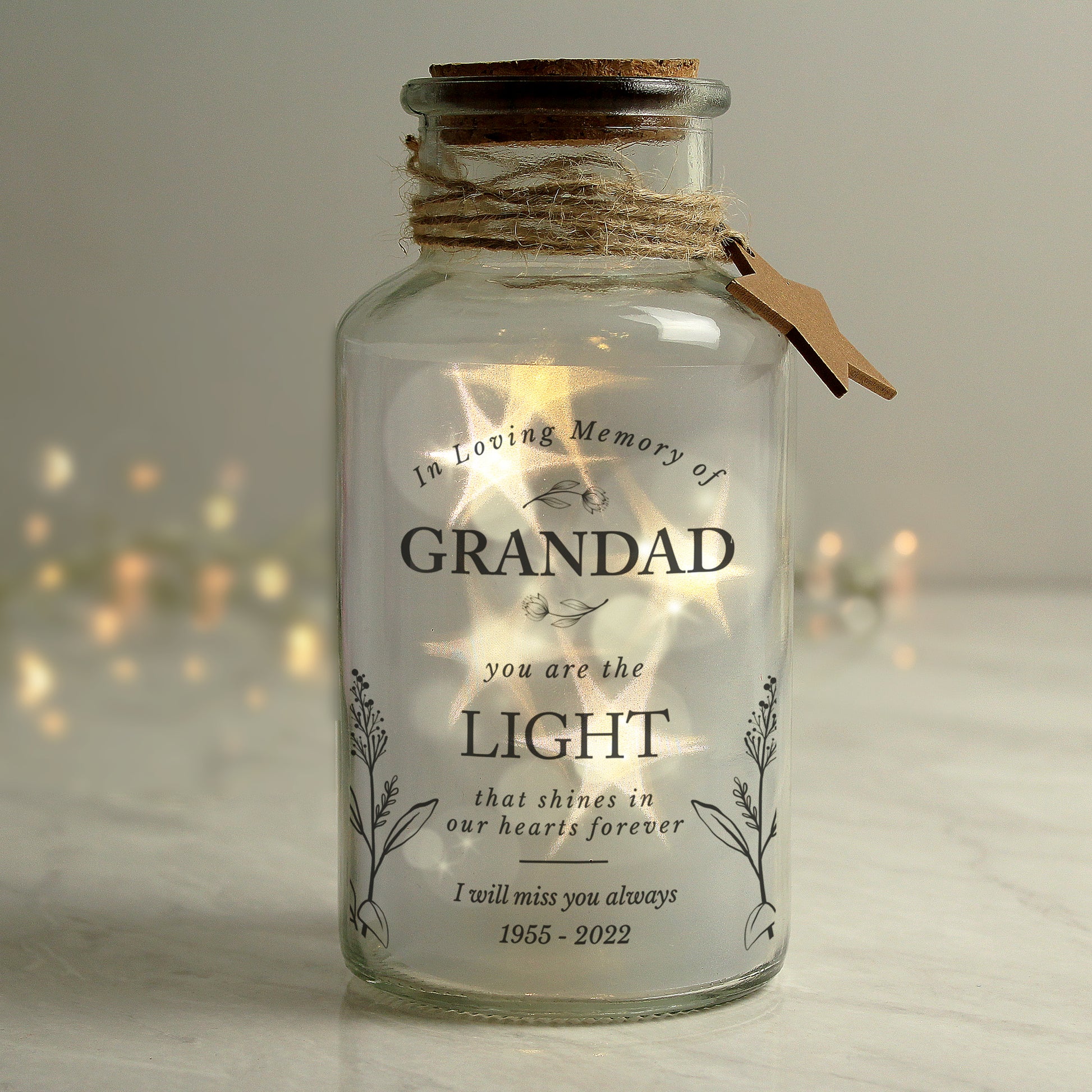 This beautiful personalised Memorial LED glass jar is a perfect gift to commemorate the life of a loved one.
