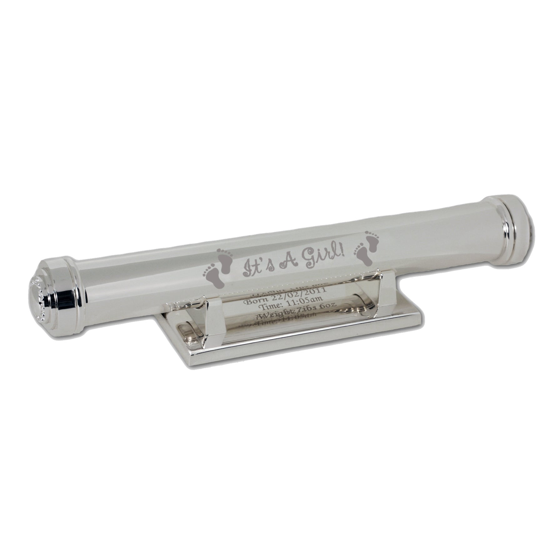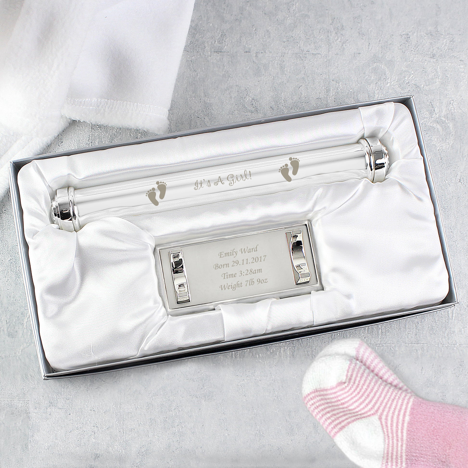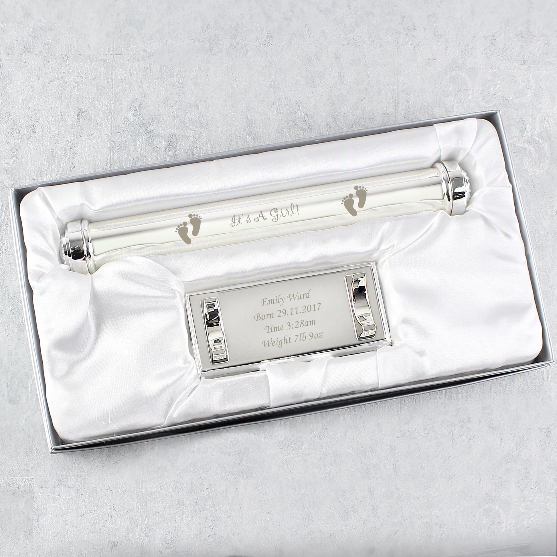 Personalised the stand with any message over 4 lines and up to 25 characters per line. The wording 'It's a Girl' featured on the holder is standard text.