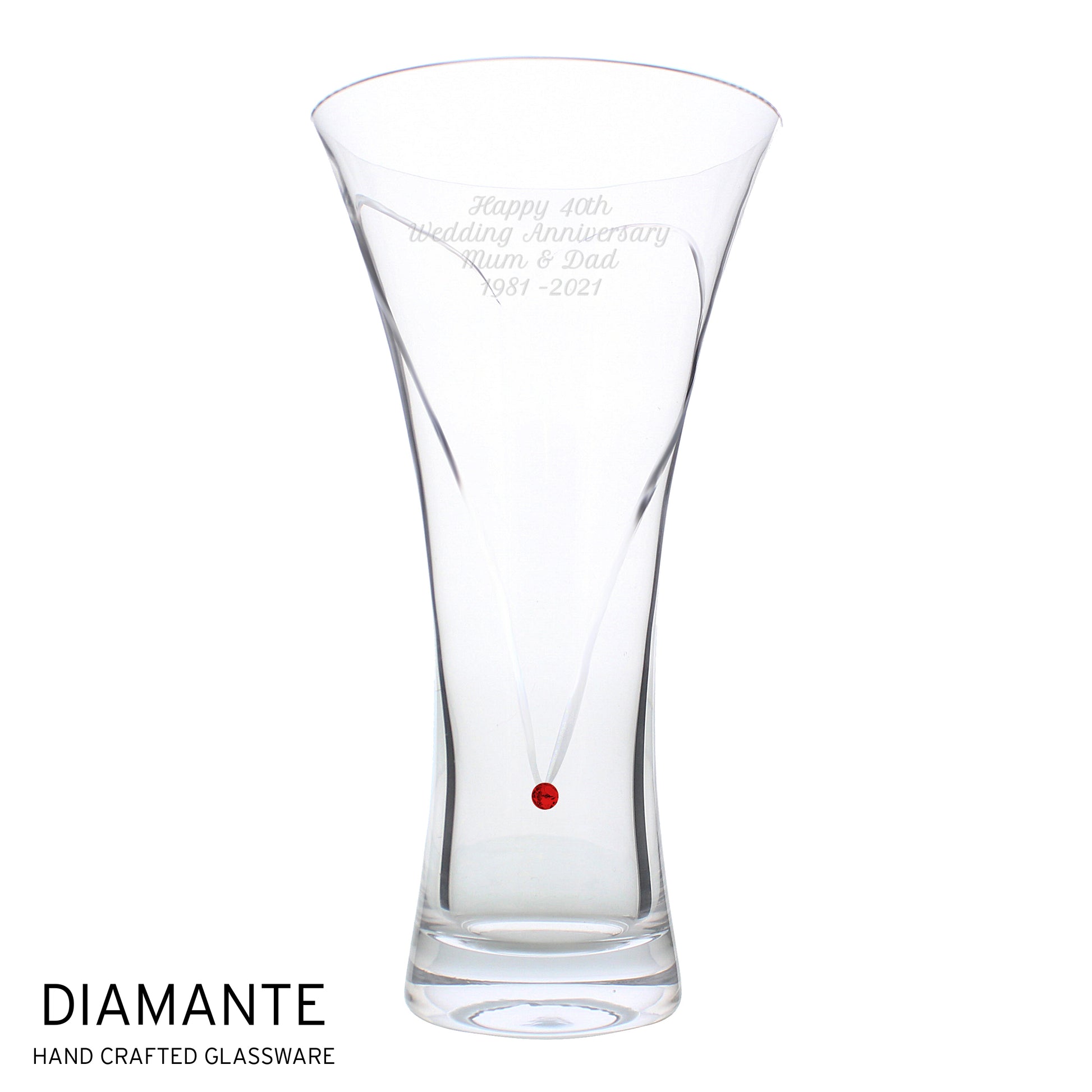 Personalised Large Hand Cut Ruby Diamante Heart Vase