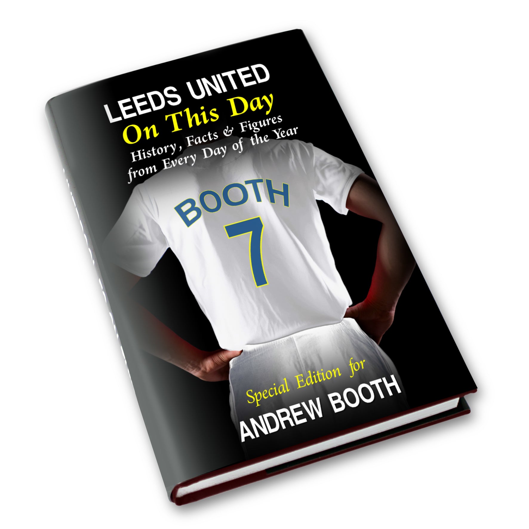 Personalise this Leeds United On This Day Book with a short name or nickname using up to 12 characters, a number or age on the back of the Leeds shirt. Also on the front add a full name using up to 25 characters. Inside the cover add a message of up to 4 lines of 20 characters.