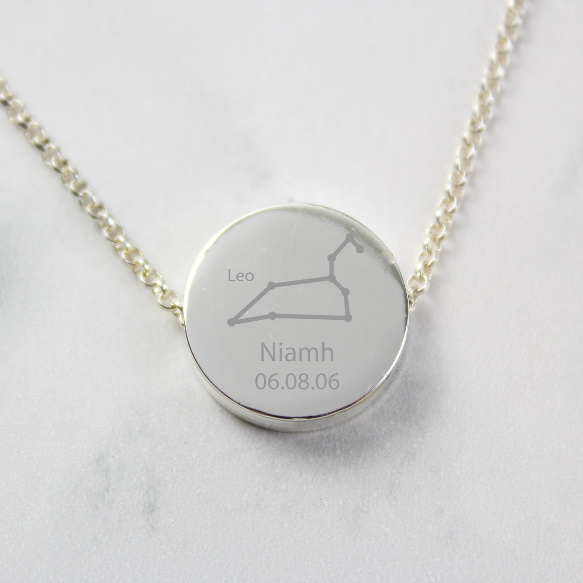 Personalised Leo Zodiac Star Sign Silver Tone Necklace (July 23rd - August 22nd)