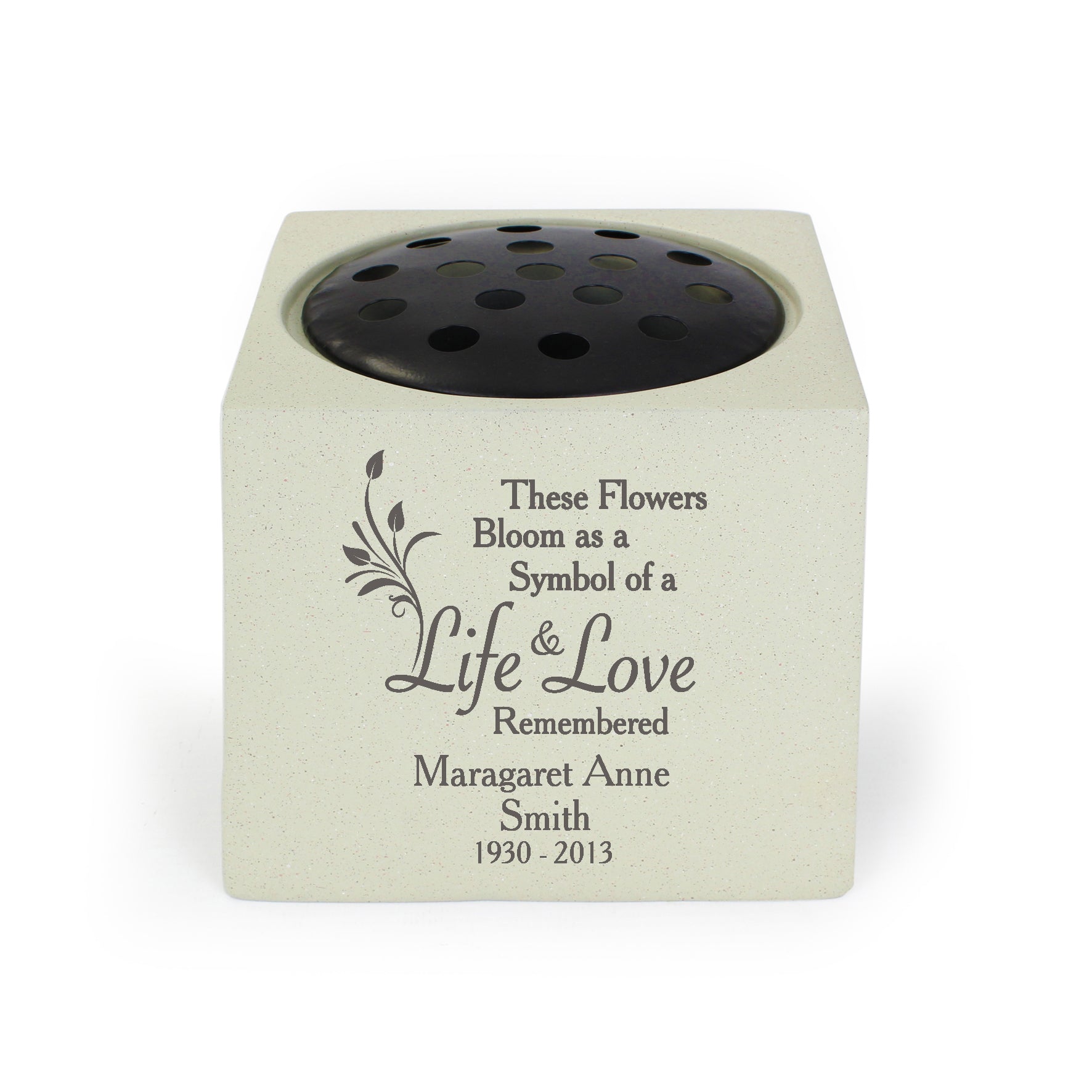 'These flowers bloom as a symbol of a life & love remembered' is fixed text.