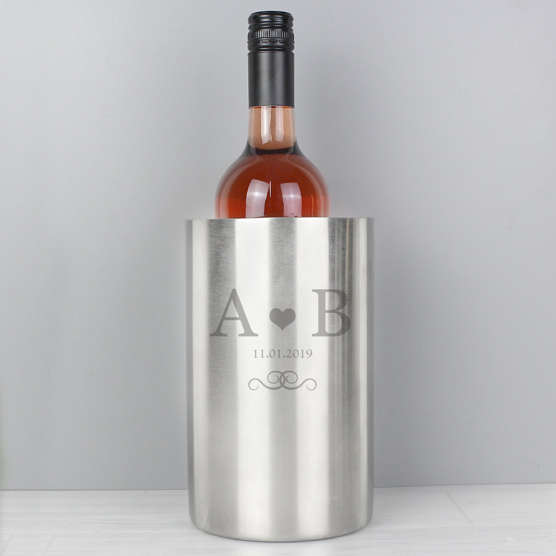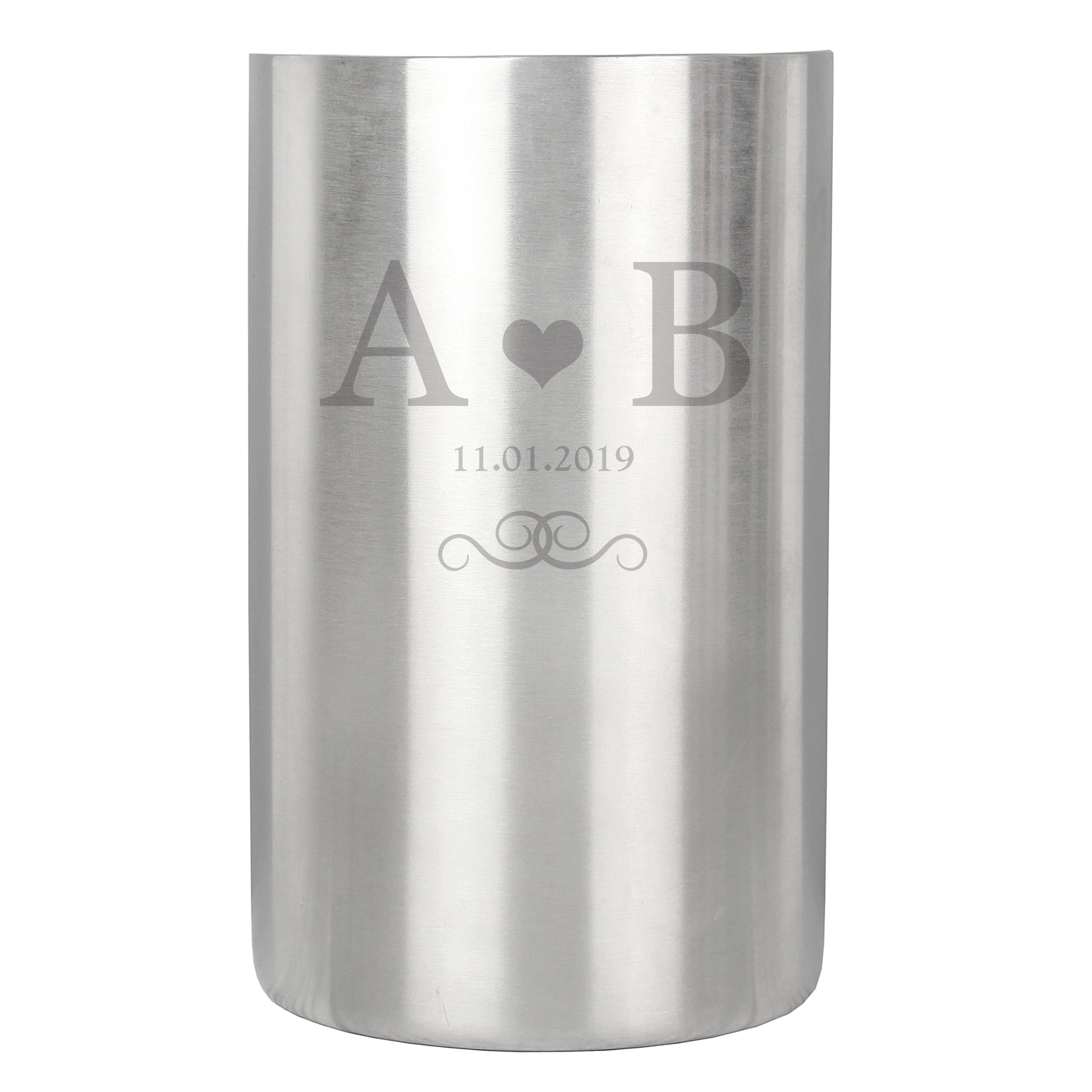 Personalise this Monogram Stainless Steel Wine Cooler with 2 initials and date up to 20 characters.
