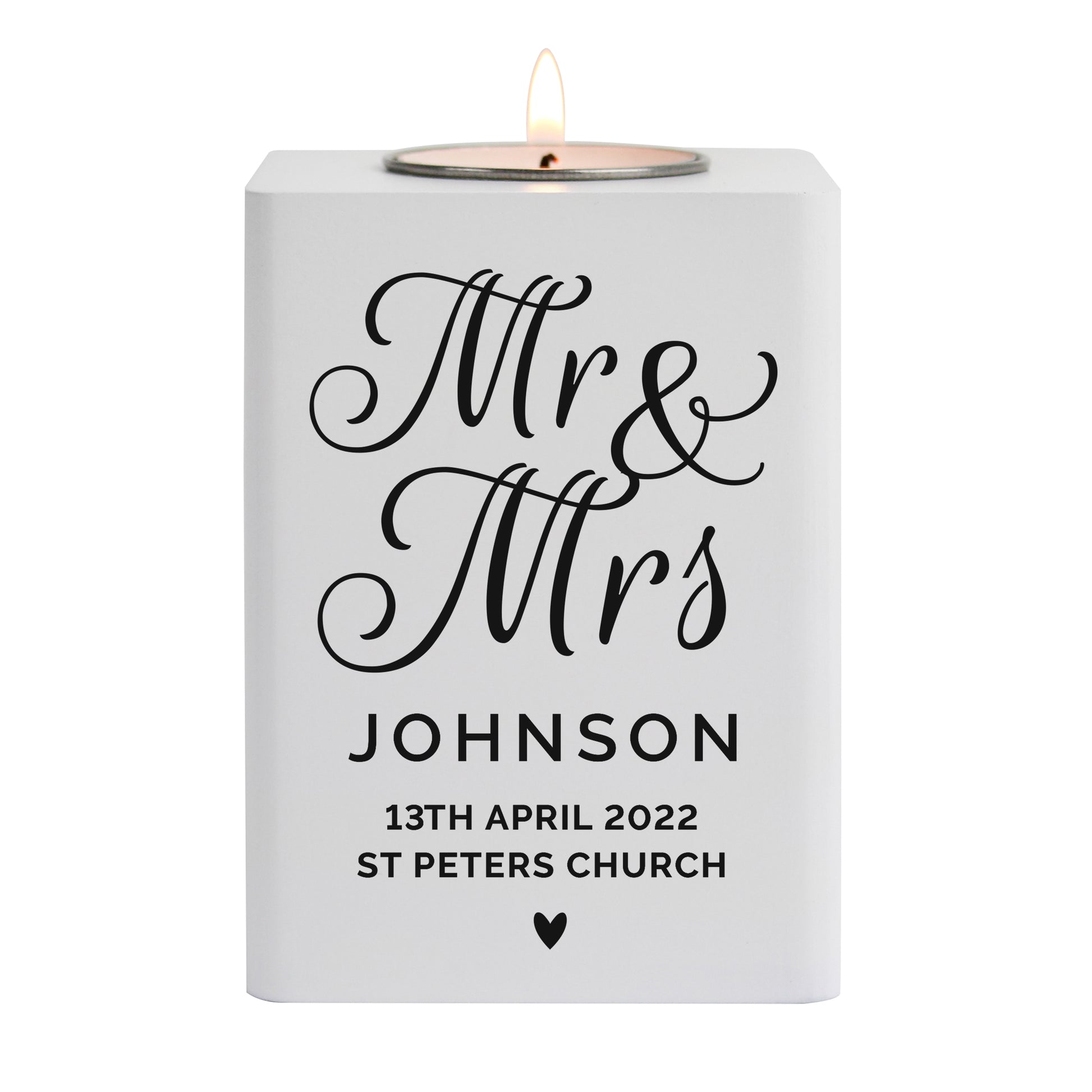 Personalised Mr & Mrs White Wooden Tea light Holder