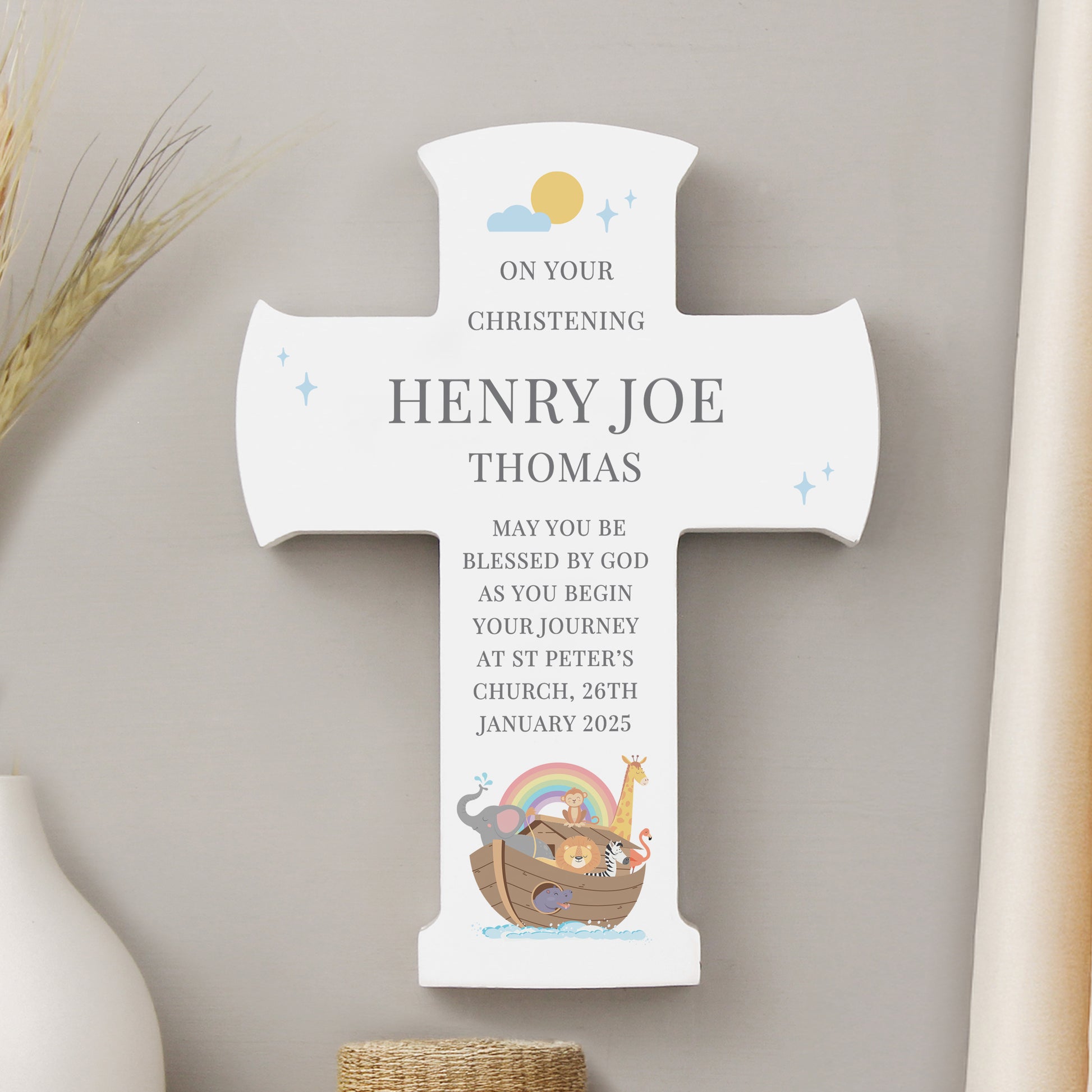 Personalised Noahs Ark Cross Wooden Ornament