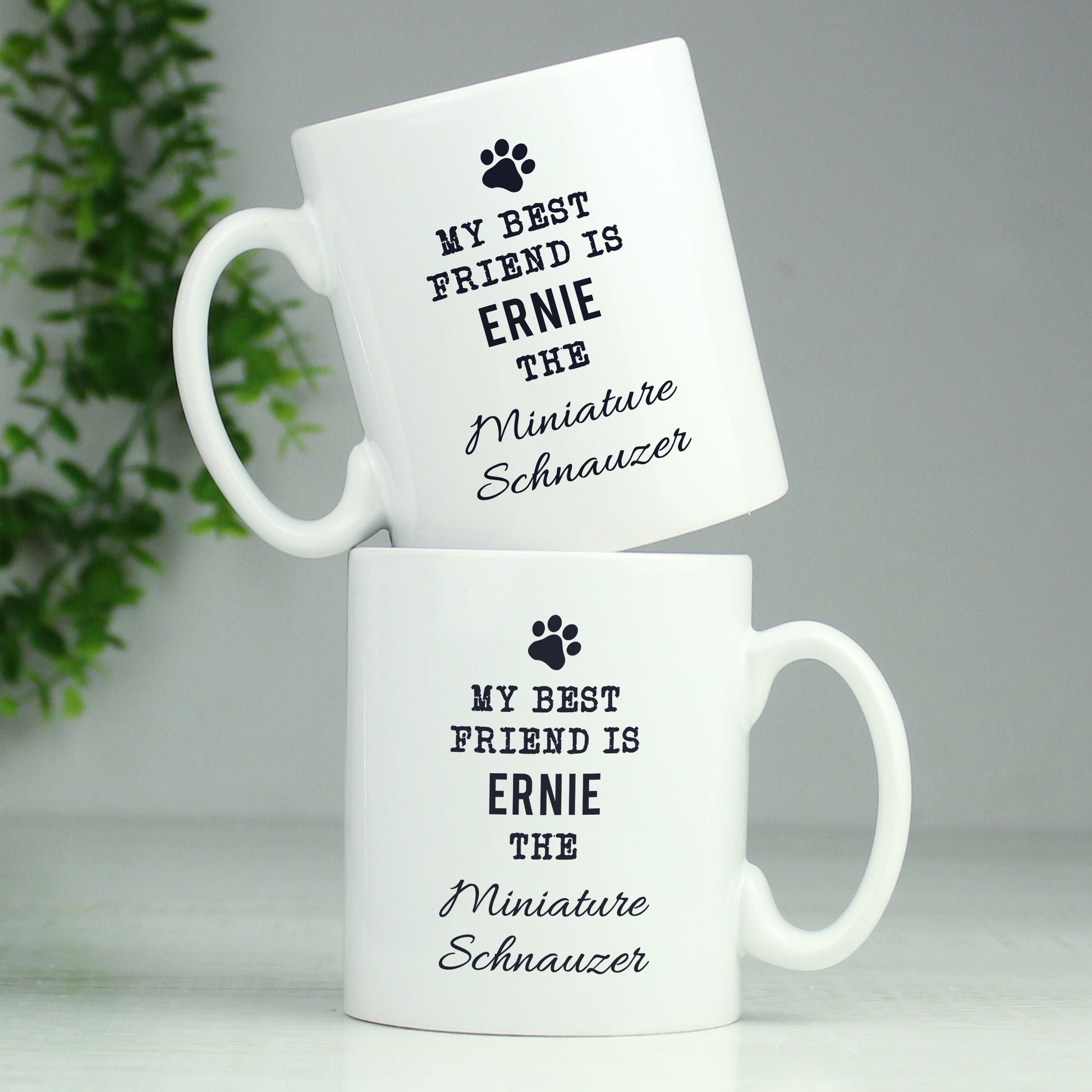 This Paw Print Dog Breed Mug can be personalised with 2 lines of text as below