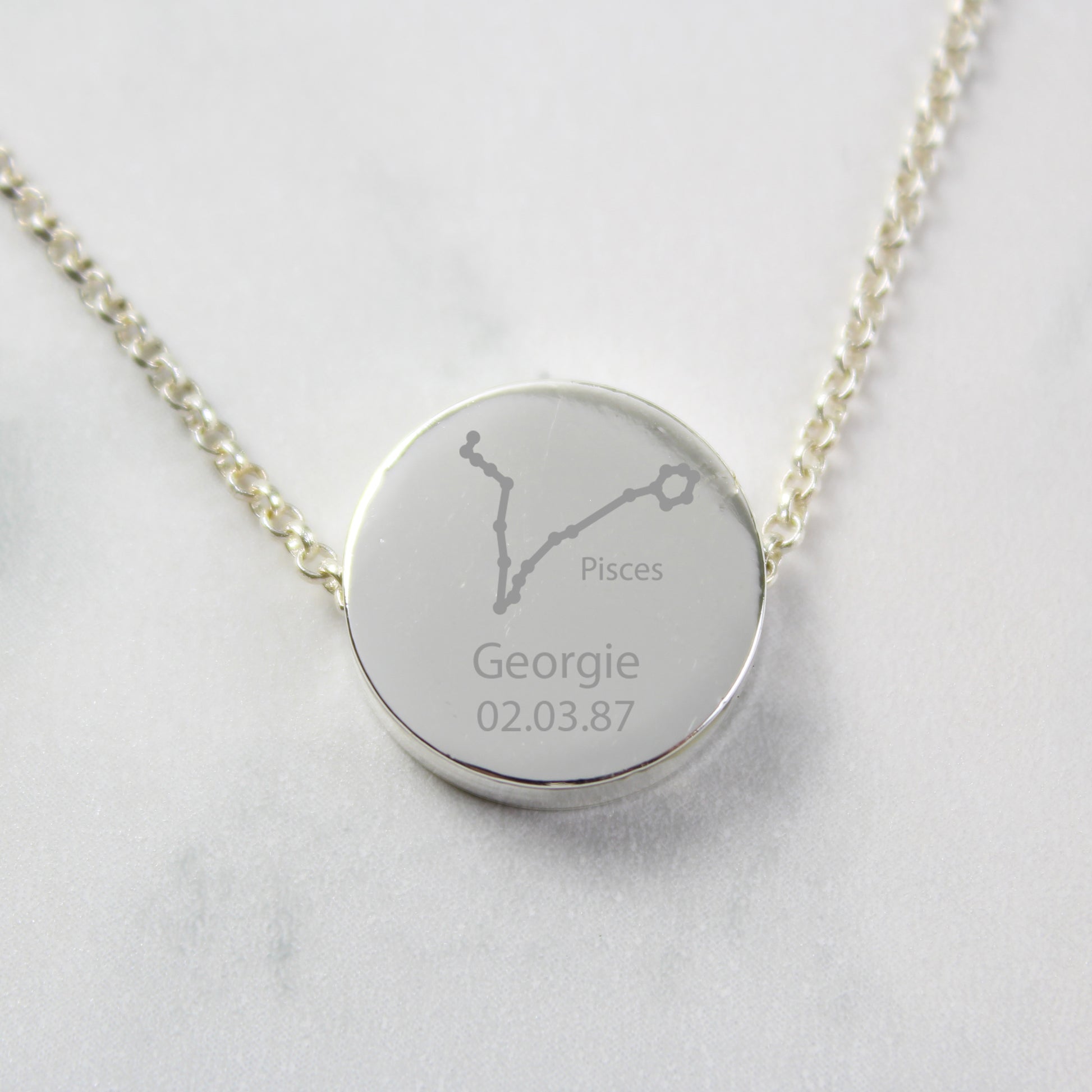 Personalised Pisces Zodiac Star Sign Silver Tone Necklace (February 19th - March 20th)