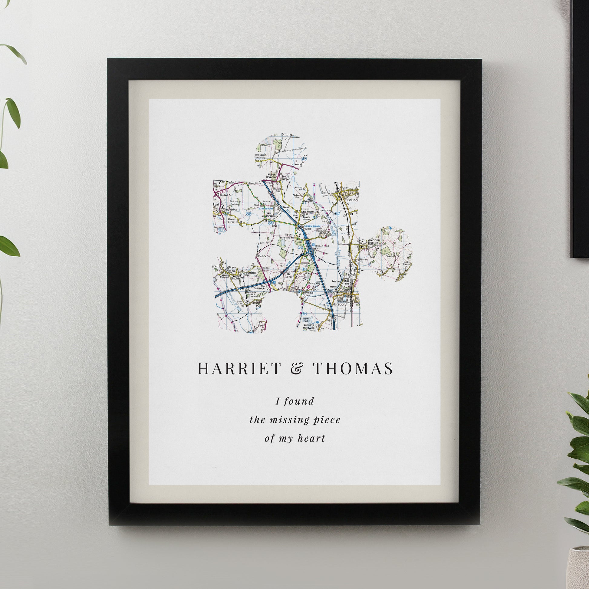 Personalise this present day map framed print with a Full UK Postcode (see exclusions below), and a further 4 lines of up to 30 characters each for a message.