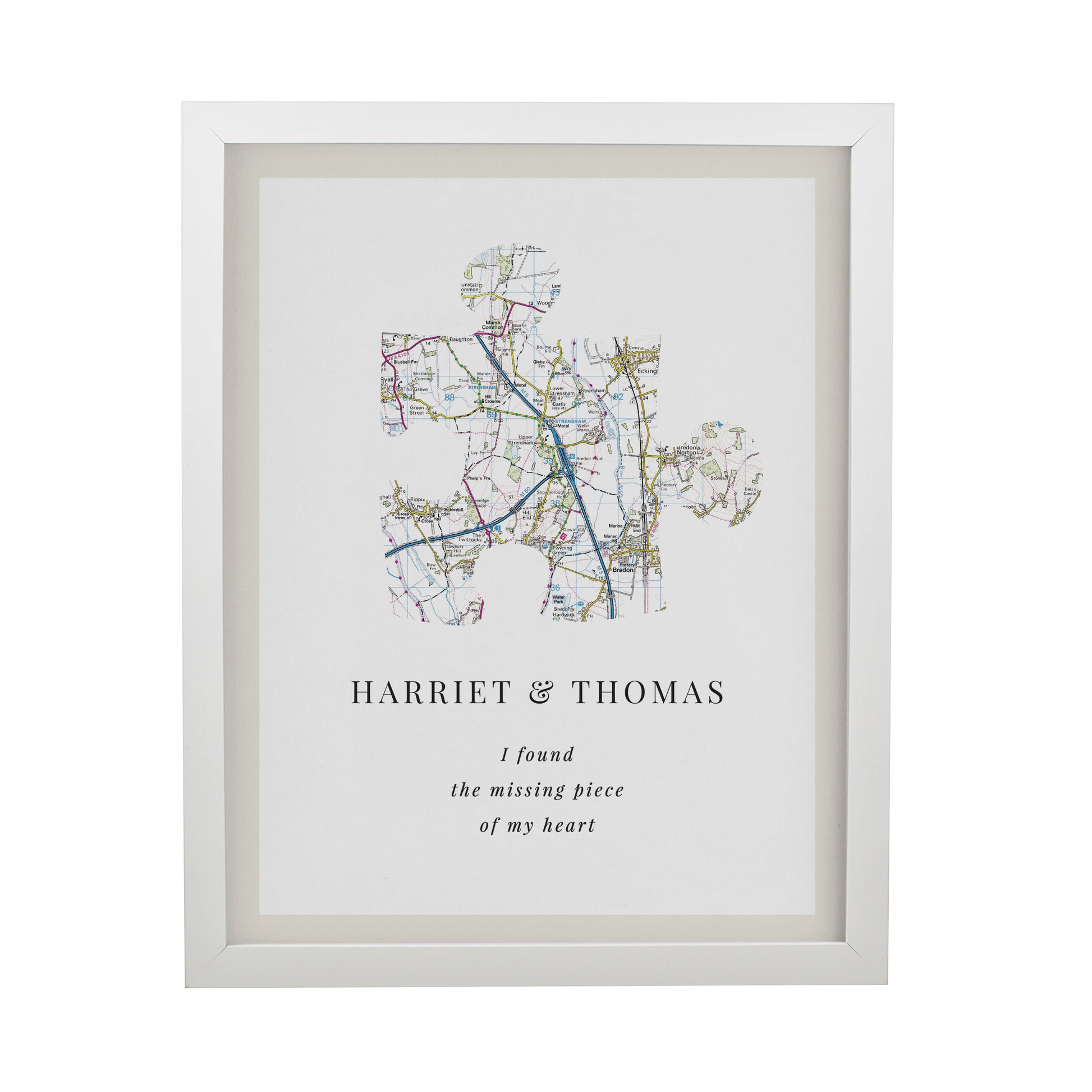 Personalised Present Day Map Puzzle Piece White Poster Frame
