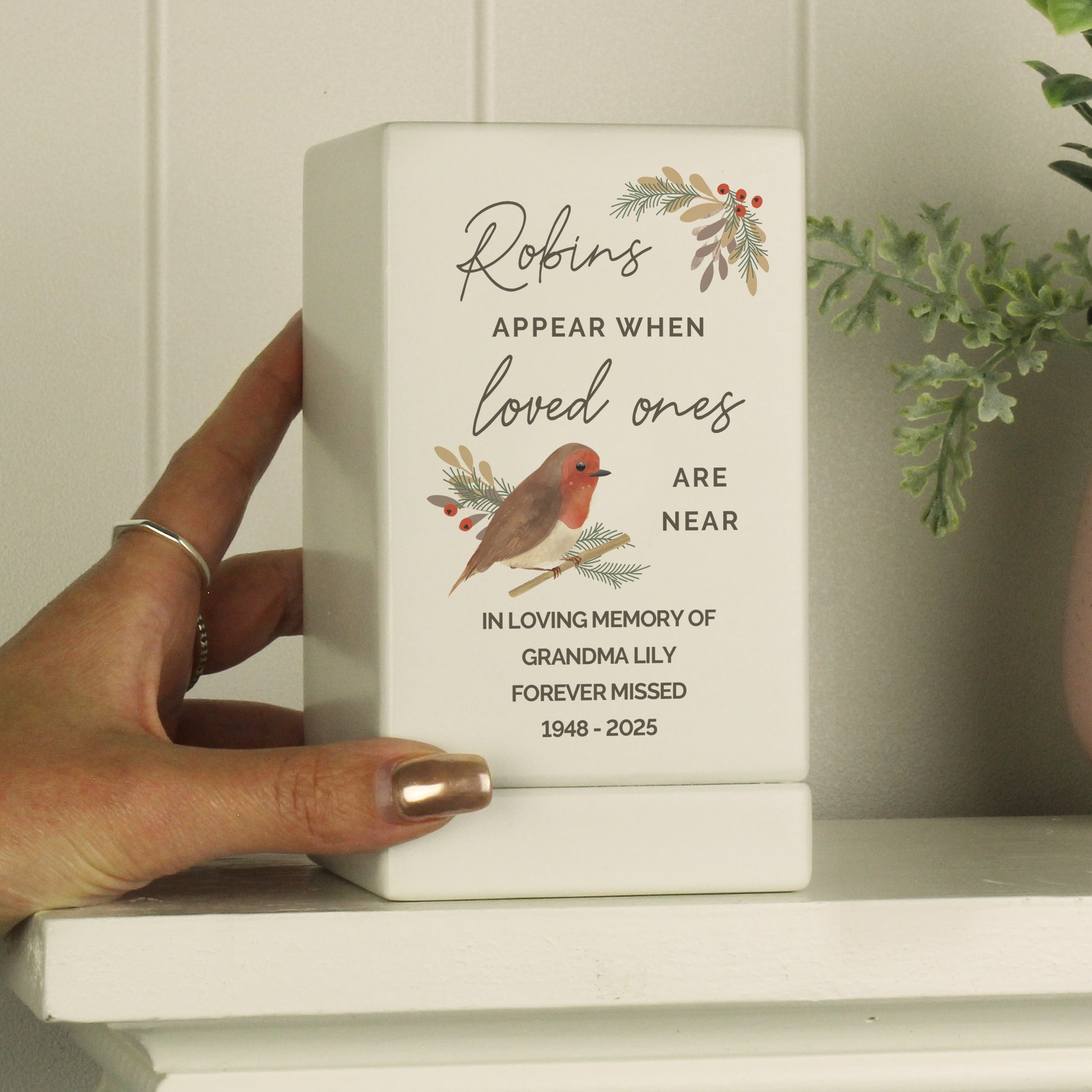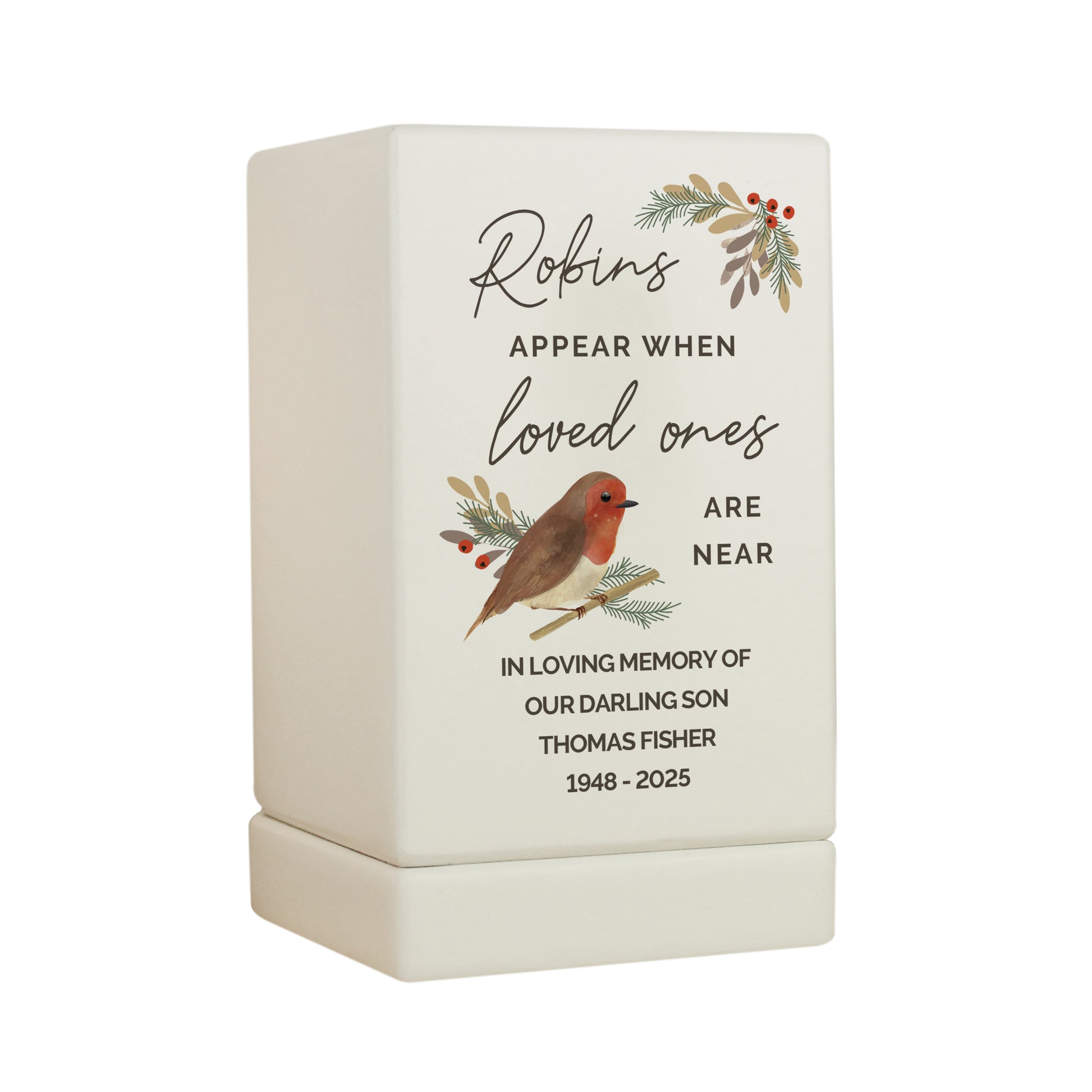 Crafted from high-quality wood, this beautiful urn features our traditional Robin design along with a personal message, making it a truly unique and heartfelt tribute.