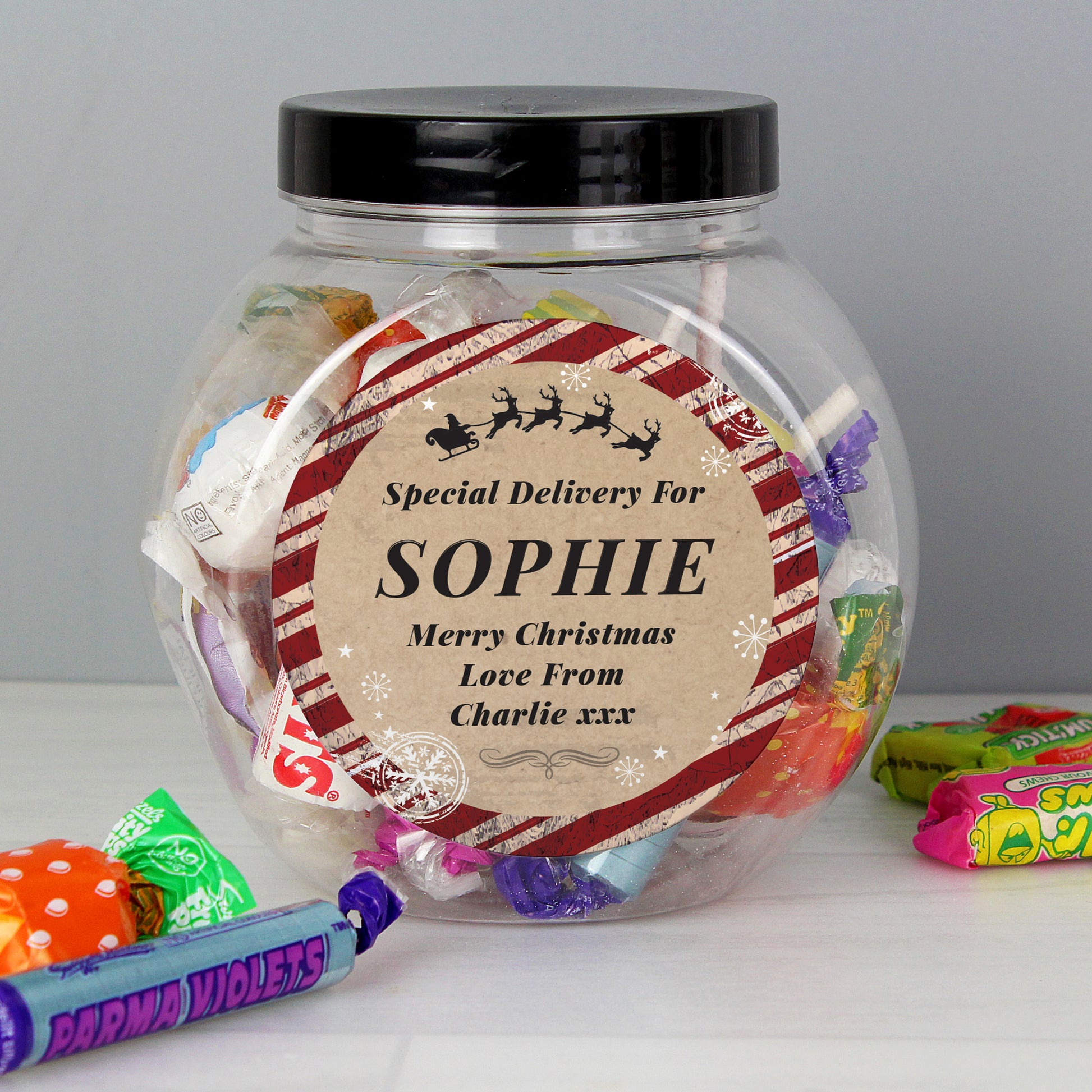 This sweet jar can be personalised with a name up to 12 characters and a message over 3 lines with up to 20 characters available per line.