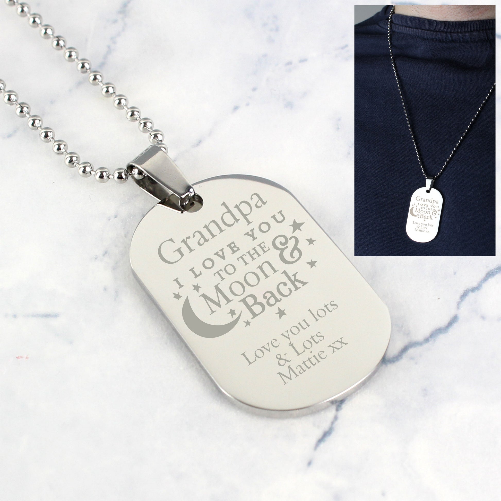 Personalised 'To The Moon & Back...' Stainless Steel Dog Tag Necklace