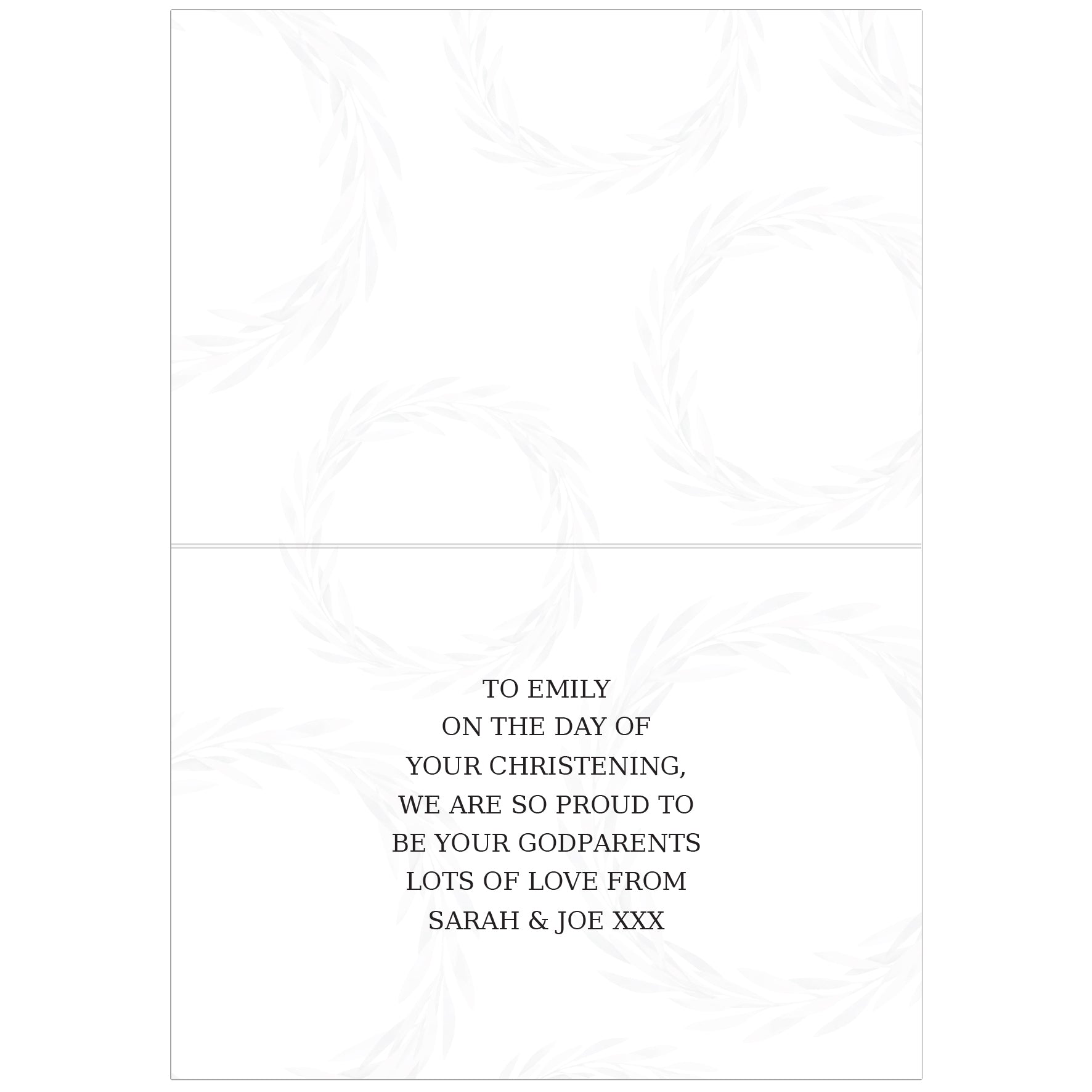 Personalise the front of this card with any name up to 20 characters. The inside of this card can be personalised with up to 7 lines, 25 characters per line.