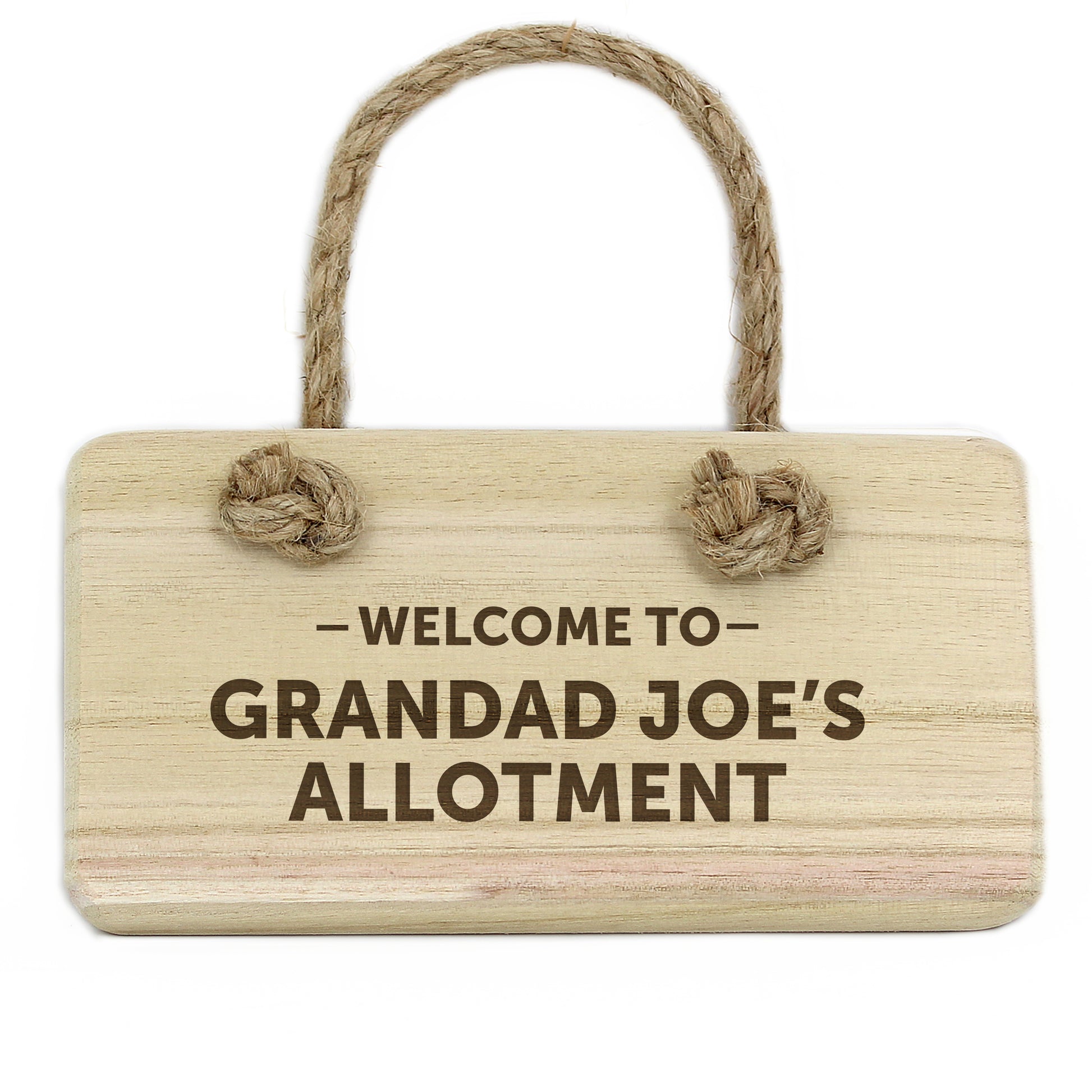 This wooden sign is supplied with rope attached, ready to hang.